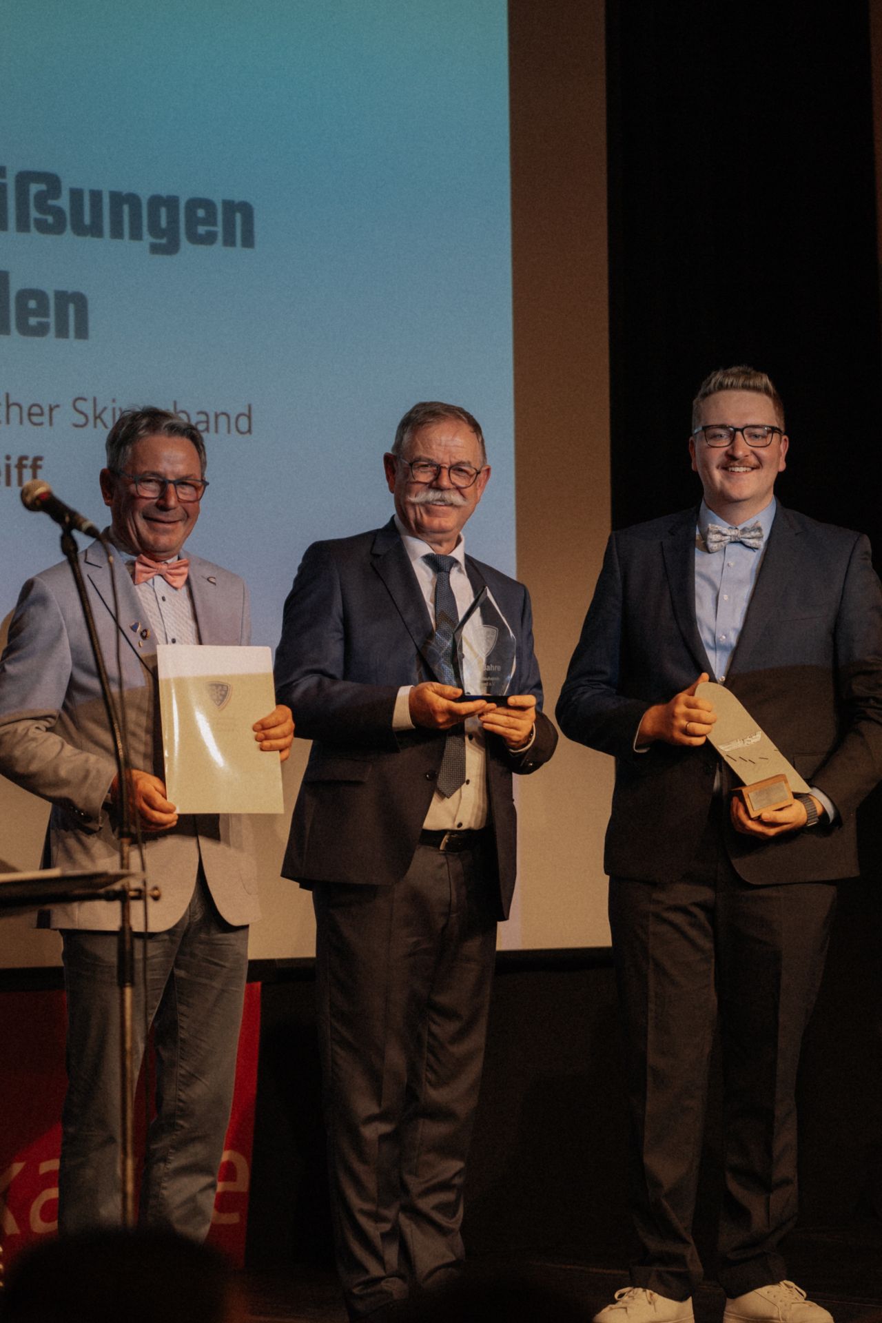 Die Glückwünsche der Stadt Rottweil überbrachte OB Ruf. Er überreichte im Namen von Ministerpräsident W. Kretschmann die Landesehrennadel Baden-Württemberg an Florian Fischer, Rolf Schanz und Gerd Baur. Weitere Glückwünsche überbrachten Vertreter des SSV, des WLSB sowie Thomas Covini, Obmann des Schiklub Imst.